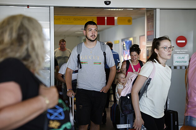 Na brněnské letiště dorazili čeští turisté z ostrova Rhodos, který zachvátily požáry. (24. července 2023)