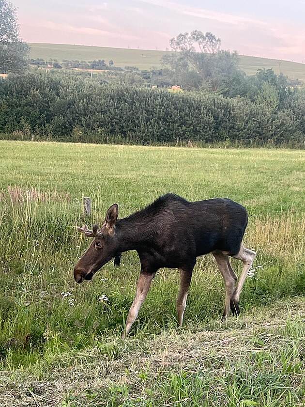 Los evropský zvaný Emil se přišel napít do rybníčku v obci Korytná na Uherskohradišťsku.