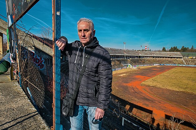 Lubomír Hrstka na brněnském stadionu za Lužánkami, který v 90. letech vlastnil.