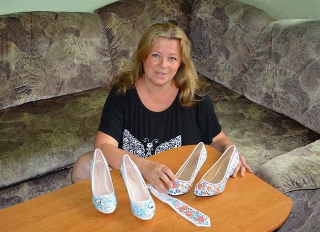 Ano, jedny jsem malovala pro svého bratrance. Hraje v Divadle Radost v Brně a přinesl mi boty, ve kterých hrál Domýšlivce v Malém princi. Když pak slavil padesátiny, tak mi přinesl ještě kravatu, aby mu to na oslavě ladilo. Letos jsem dokonce jednomu ženichovi malovala sako se slováckými ornamenty. On i jeho – teď už – paní jsou zapálení folkloristé, ale svatba v kroji neprošla, tak to vyřešili aspoň folklorními motivy na oznámení, nevěsta na lodičkách a ženich na saku.