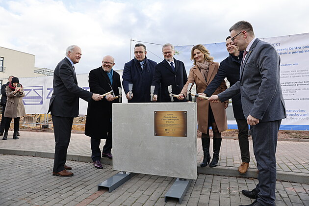 Poklepání základního kamene budoucího Centra onkologické prevence a Centra inovativní a podpůrné péče v brněnském Masarykově onkologickém ústavu. (15. ledna 2024)