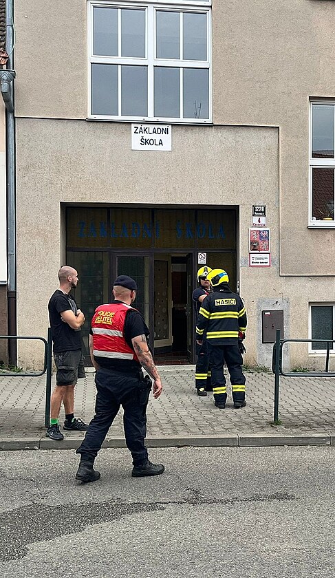 Policisté pomáhali s evakuací třiceti lidí ze šesti domů v brněnské ulici Cacovická, kde došlo k masivnímu úniku plynu. (27. srpna 2025)