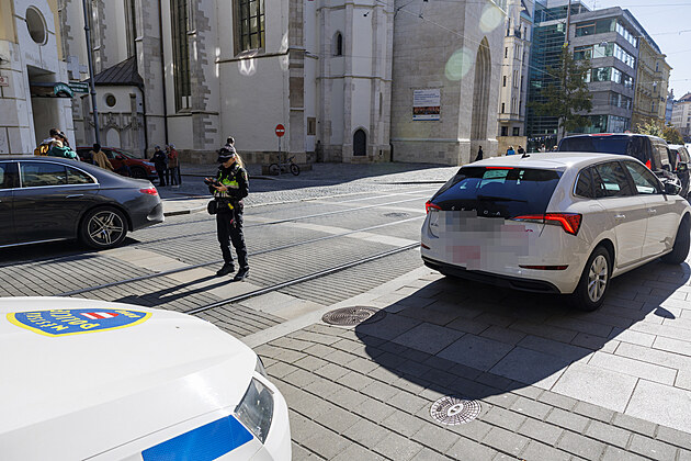 Strážníci na několika místech hlídají vjezd do historického centra Brna. Pokuty se ukázaly jako neúčinné. (říjen 2025)