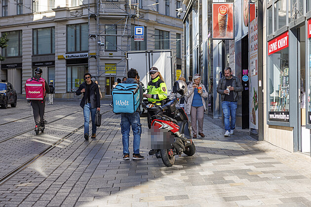 Strážníci na několika místech hlídají vjezd do historického centra Brna. Pokuty se ukázaly jako neúčinné. (říjen 2025)