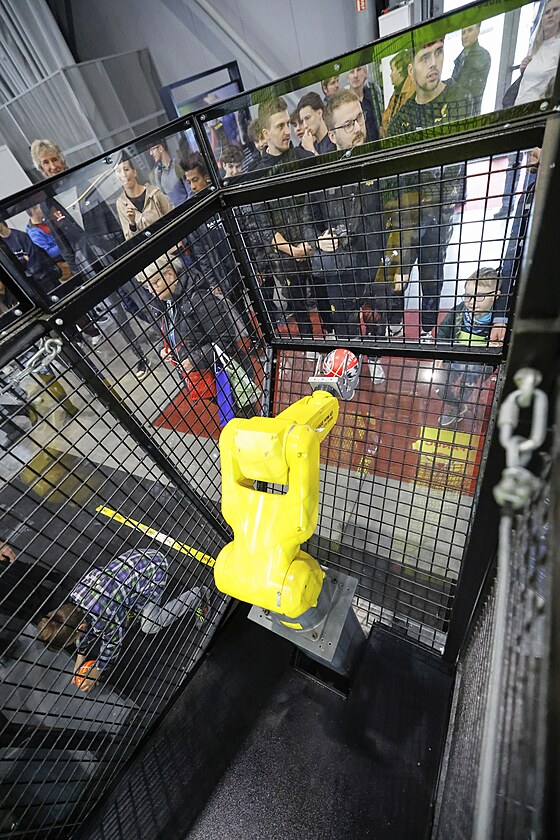 Mezinárodní strojírenský veletrh v Brně na podzim 2025 se nese v duchu digitalizace a robotizace těžkého průmyslu včetně využití umělé inteligence. Na snímku robot hrající basketbal.