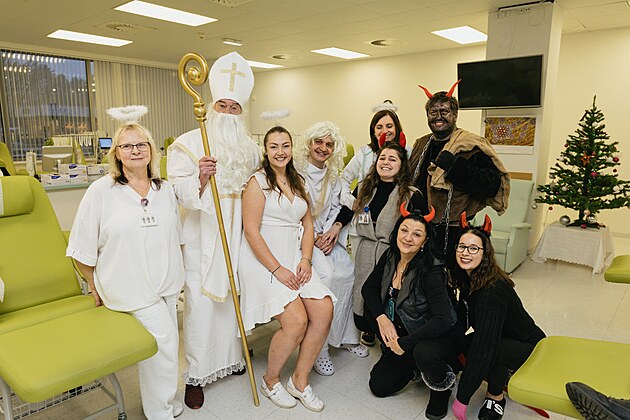 Ve Fakultní nemocnici Brno měli na Mikuláše speciální odběr v kostýmech. Dárci dostali od Mikuláše nadílku. (5. prosince 2025)