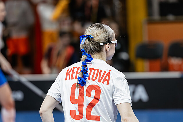 Hráčky řeší nejen taktiku a sportovní výkon, ale i otázku, jak naložit se svými vlasy. K vidění tak byla přehlídka různě zdobených copánků. Na snímku česká útočnice Vanessa Rebecca Keprtová.