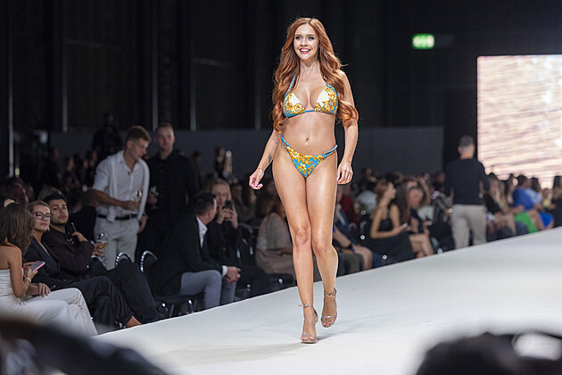 Na módní přehlídce Czech Fashion Week na brněnském výstavišti byly k vidění také plavky. (23. srpna 2025)