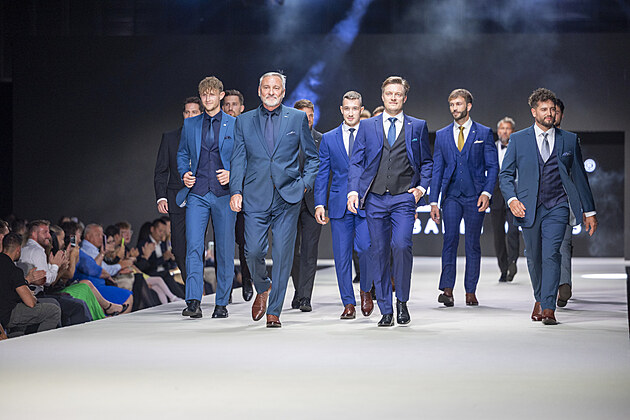 Na módní přehlídce Czech Fashion Week na brněnském výstavišti byly k vidění také pánské obleky značky Bandi. (23. srpna 2025)