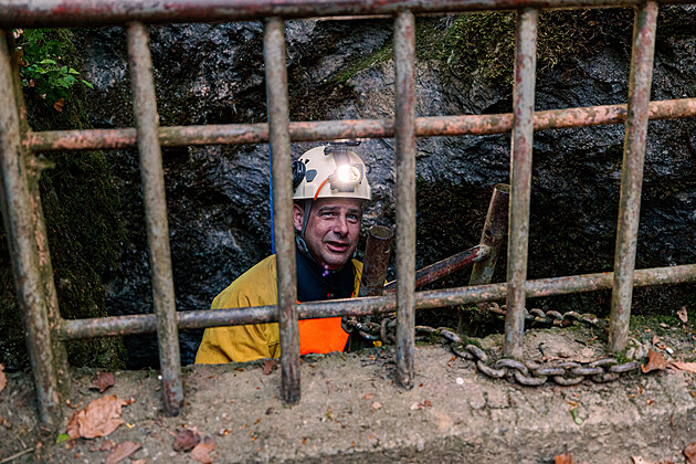 Trojice potápěčů zdolává dosud nepokořenou trasu šesti jeskyněmi v Moravském krasu. Je dlouhá přibližně 7,5 kilometru a jde o propojení Nové Rasovny s Macochou, které se dosud nikomu nepovedlo. Na snímku Jan Sirotek. (9. května 2025)