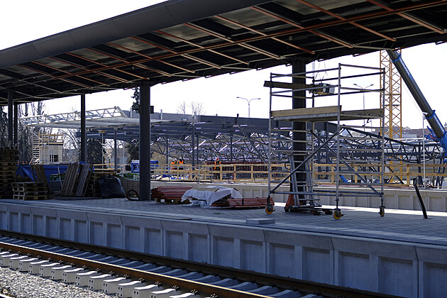 Nová nádražní budova u vlakové stanice v Brně-Králově Poli se už rýsuje (březen 2025)
