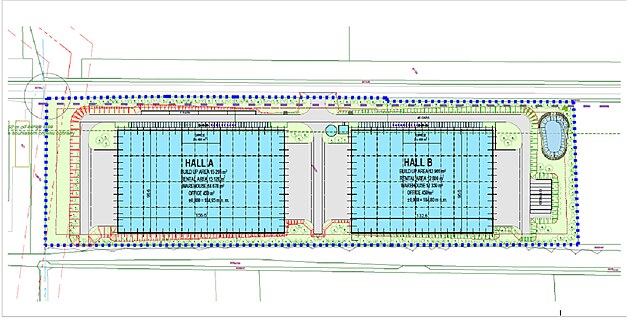 Situační nákres plánovaných hal v Zaječí na Břeclavsku