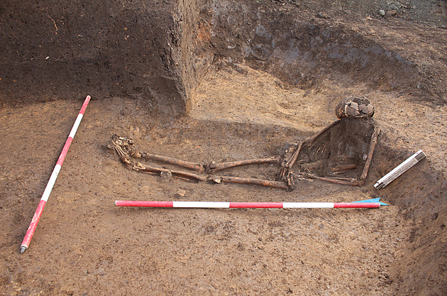 Jeho ostatky našli uložené v jámě a podle vedoucího týmu Michala Buča zůstaly přesně tak, jak byl muž pohřben, tedy s nohama nataženýma dopředu. Jde o nález z mladší doby kamenné, konkrétně z kultury s lineární keramikou zhruba z období 5 000 let před naším letopočtem.