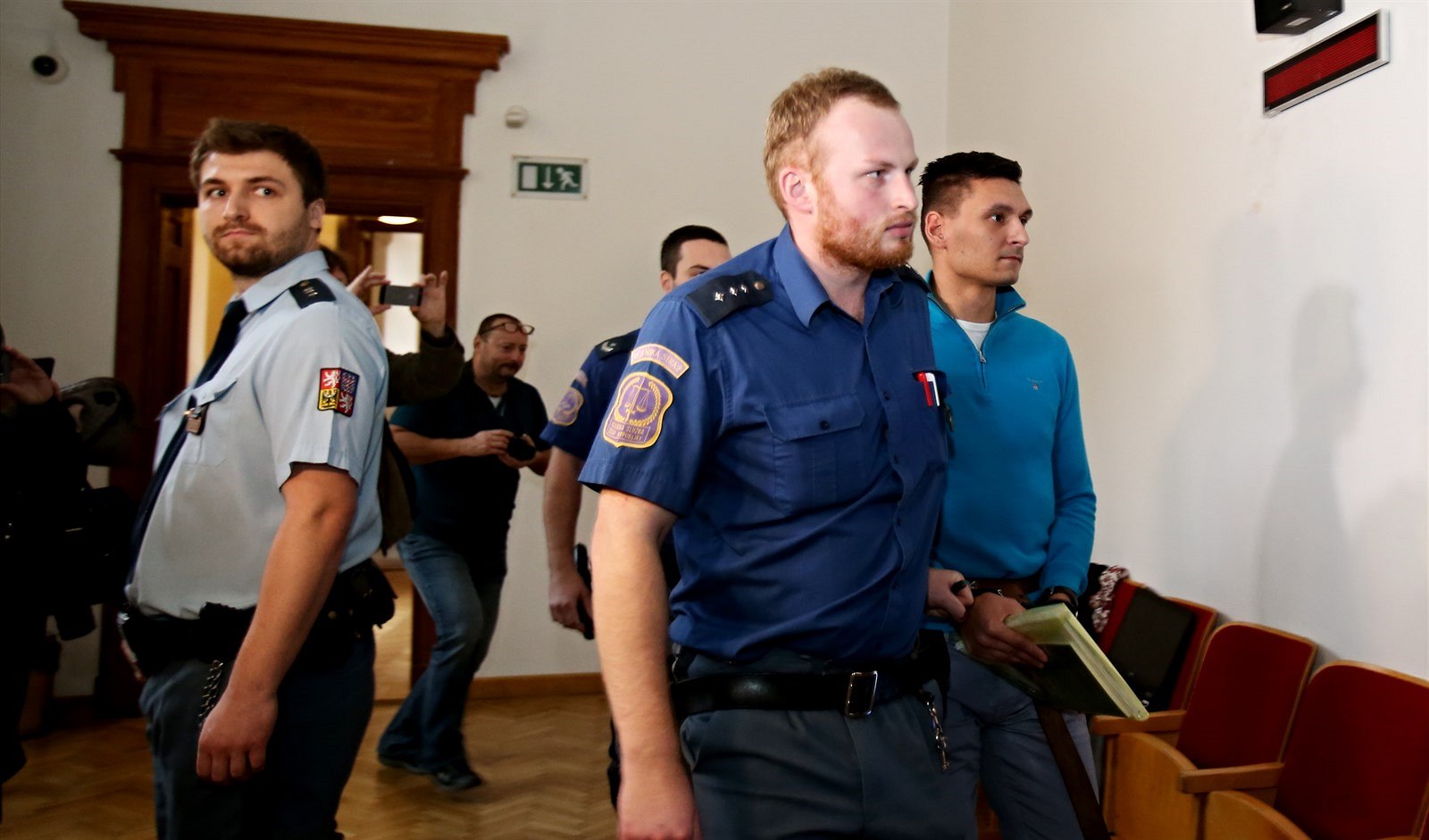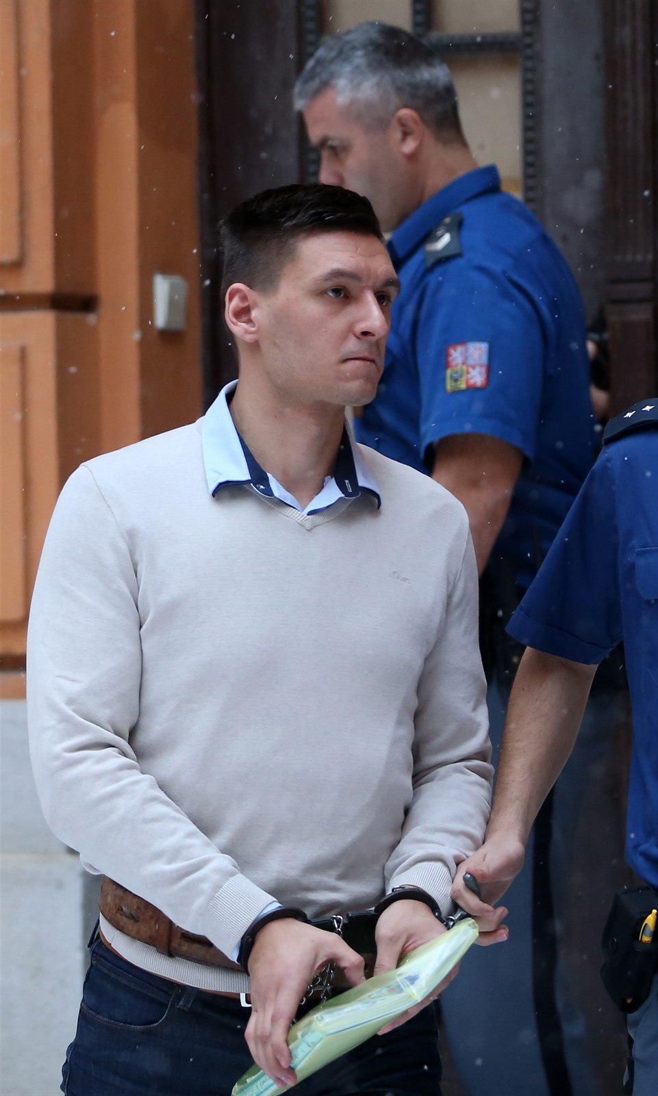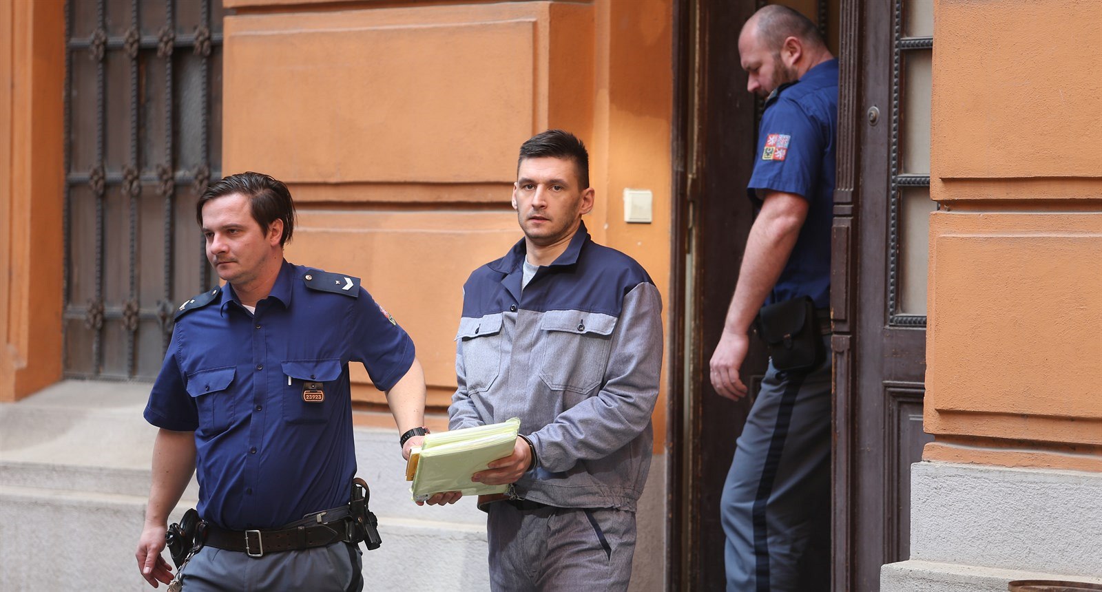 Vězeňská ostraha vede obžalovaného Radima Žondru k soudnímu jednání. (26. března 2019).