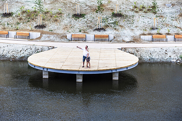 Ačkoliv první náplavka v Brně ještě není otevřená a na staveniště je vstup stále zakázán, někteří to ignorují. (25. června 2025)
