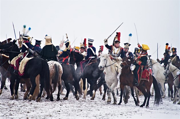 Na poli u Tvarožné nedaleko Slavkova proběhla rekonstrukce bitvy tří císařů k jejímu 213. výročí. (1. prosince 2018)