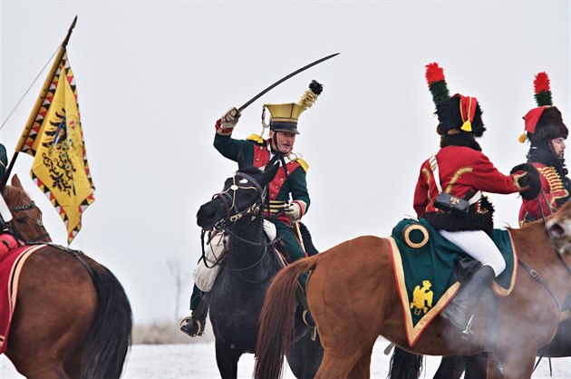 Na poli u Tvarožné nedaleko Slavkova proběhla rekonstrukce bitvy tří císařů k jejímu 213. výročí. (1. prosince 2018)