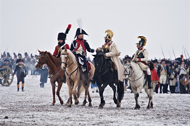 Na poli u Tvarožné nedaleko Slavkova proběhla rekonstrukce bitvy tří císařů k jejímu 213. výročí. (1. prosince 2018)