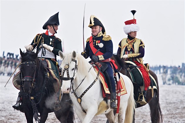 Na poli u Tvarožné nedaleko Slavkova proběhla rekonstrukce bitvy tří císařů k jejímu 213. výročí. (1. prosince 2018)