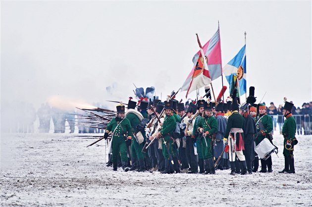 Na poli u Tvarožné nedaleko Slavkova proběhla rekonstrukce bitvy tří císařů k jejímu 213. výročí. (1. prosince 2018)