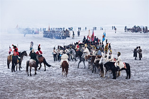 Na poli u Tvarožné nedaleko Slavkova proběhla rekonstrukce bitvy tří císařů k jejímu 213. výročí. (1. prosince 2018)