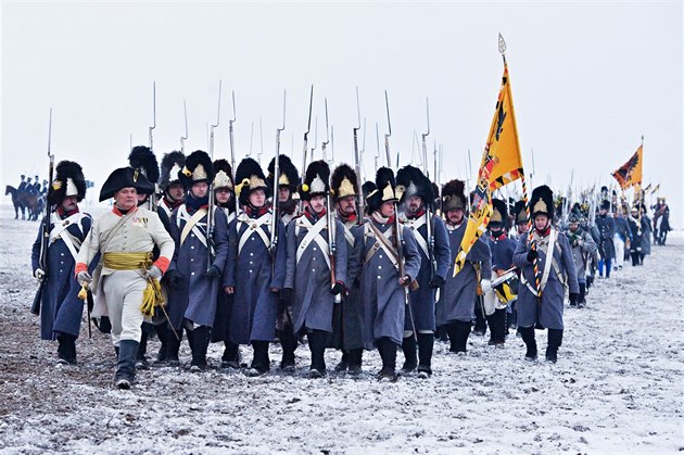 Na poli u Tvarožné nedaleko Slavkova proběhla rekonstrukce bitvy tří císařů k jejímu 213. výročí. (1. prosince 2018)