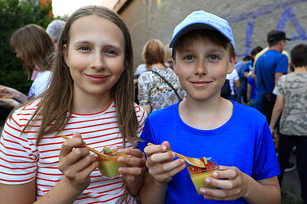 Při odhalení pamětní desky Adama Bernaua v brněnských Žabovřeskách nemohla chybět ani seriálová potrava, slavné amarouny. (12. června 2025)