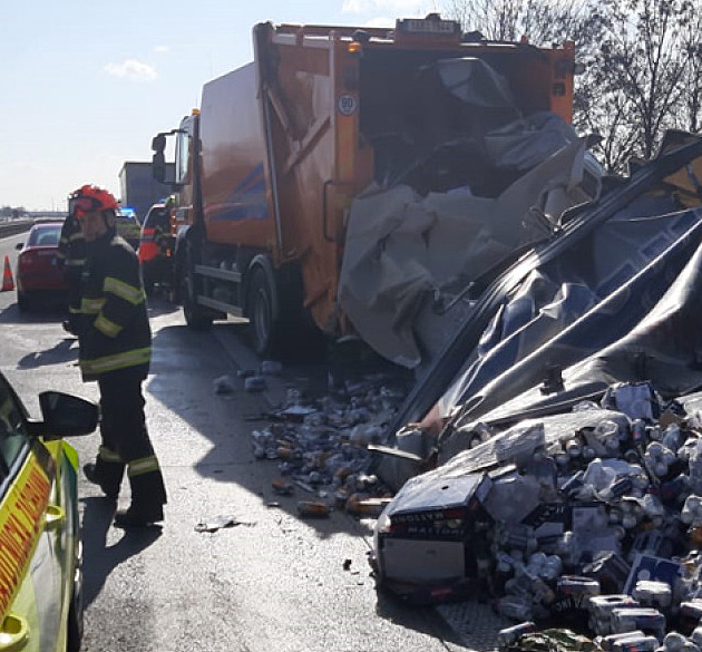 Policisté informovali o srážce dvou nákladních vozů na 21. kilometru D2 u Velkých Němčic na Břeclavsku ve směru na Bratislavu.