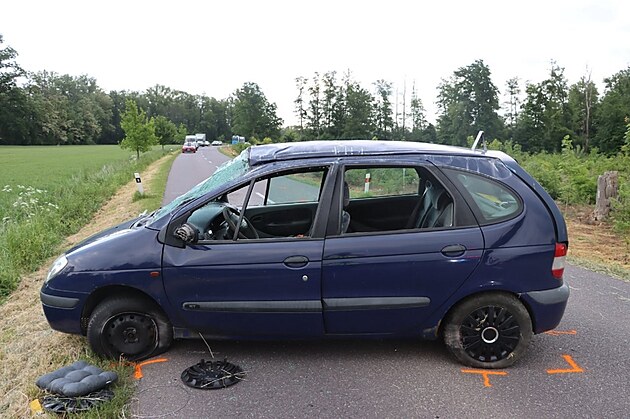 Řidič renaultu havaroval na Znojemsku poté, co mu během jízdy skočil za krk vlastní pes. Pro zraněnou spolujezdkyni přilétl vrtulník. (21. května 2025)