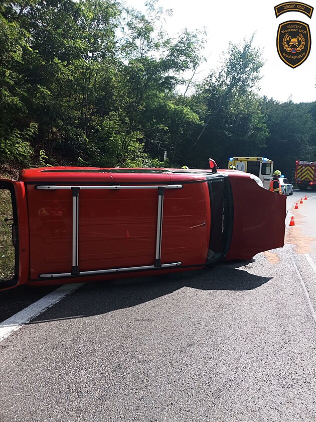 V Buchlovských kopcích skončil minulý víkend auto převrácené na bok, mladé rodině pomáhal ven strážník z Brna, který kolem projížděl na dovolenou. (26. července 2025)