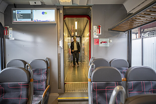 Dopravce Arriva představil první ze 13 motorových vlaků, které bude provozovat na objednávku Jihomoravského kraje na linkách na Břeclavsku, Hodonínsku a Znojemsku. (10. dubna 2024)