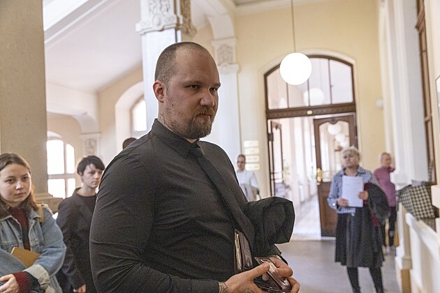 David Ondra (na snímku) spolu s bývalým pracovníkem policie R. Š. stojí před Krajským soudem v Brně kvůli nelegálnímu obchodu s anabolickými steroidy. (25. března 2025)