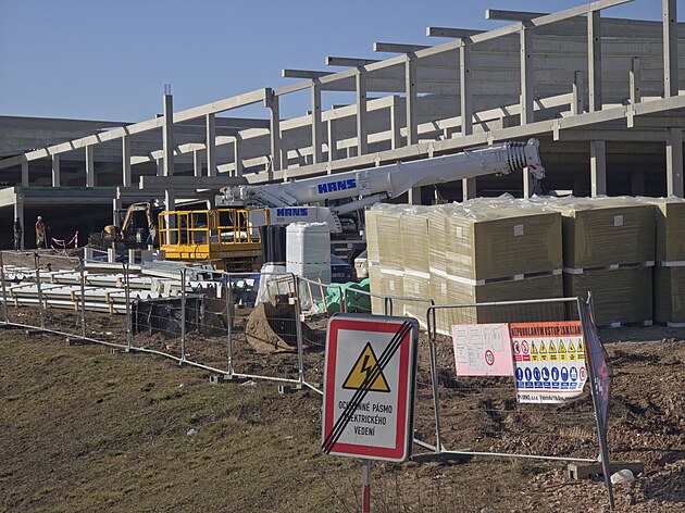 V tuto chvíli dělníci pracují na skeletu nového obchodního centra Kaskády a instalují střechu.