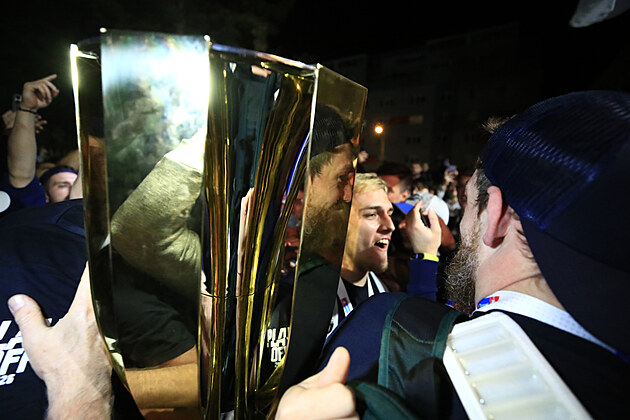 Příjezd mistrovských hokejistů Komety do Brna. Po návratu z Pardubic je přišlo přivítat na tisíc fanoušků. (30. dubna 2025)