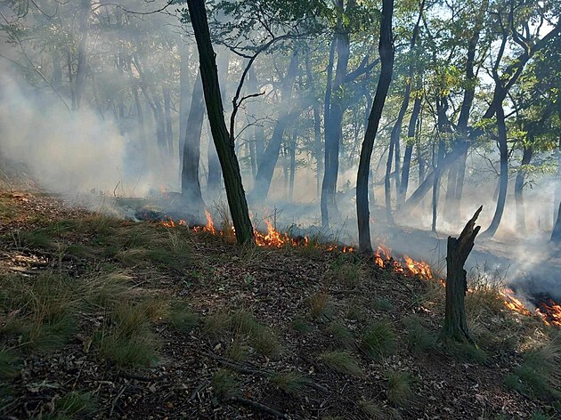 Požár lesa mezi Střelicemi a Nebovidami na Brněnsku (26.8.2025)