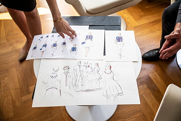 Návrhářka Zuzana Osako si v olešnické dílně Jiřího Danzingera prohlíží látky, ze kterých vznikne modrotisk pro olympioniky.