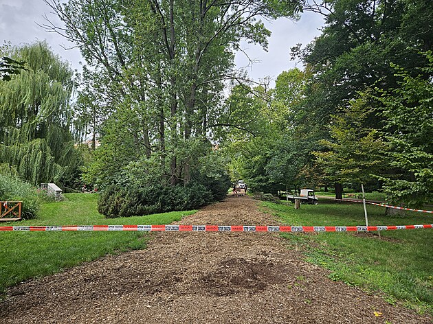 Na pejskaře spadla v brněnském parku Lužánky větev a vážně jej zranila. Pracovníci zeleně po incidentu odstraňují další dřeviny v okolí. (31. července 2025)