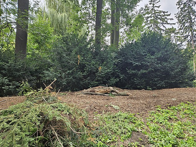 Na pejskaře spadla v brněnském parku Lužánky větev a vážně jej zranila. Pracovníci zeleně po incidentu odstraňují další dřeviny v okolí. (31. července 2025)