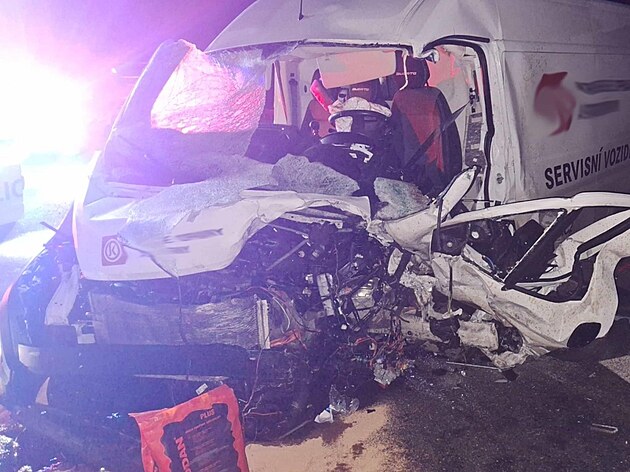 Následky tragické nehody u Pasohlávek na Brněnsku, při níž zemřely dvě osoby. Viníkem byl pravděpodobně řidič dodávky (na snímku). (27. února 2025)