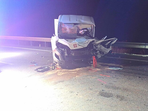 Následky tragické nehody u Pasohlávek na Brněnsku, při níž zemřely dvě osoby. Viníkem byl pravděpodobně řidič dodávky (na snímku). (27. února 2025)