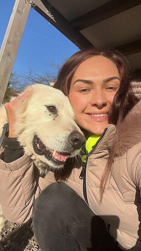 Spokojený pes Béďa se svou novou majitelkou.