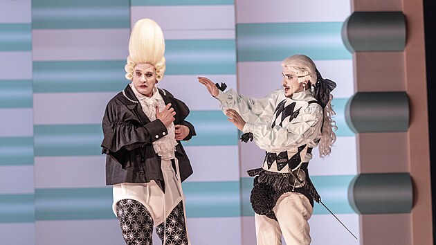 Herec Petr Bláha (vlevo) v představení Sluha dvou pánů v brněnském Mahenově divadle (2025)