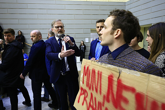 Debatu premiéra Petra Fialy na Fakultě sociálních studií Masarykovy univerzity v Brně přerušil protest asi dvou desítek mladých lidí, kteří tuto akci označili za předvolební kampaň. (17. března 2025)