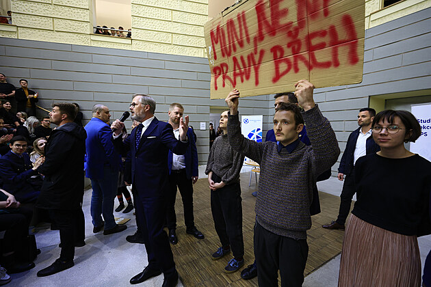 Debatu premiéra Petra Fialy na Fakultě sociálních studií Masarykovy univerzity v Brně přerušil protest asi dvou desítek mladých lidí, kteří tuto akci označili za předvolební kampaň. (17. března 2025)