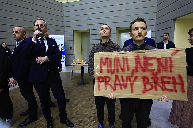 Debatu premiéra Petra Fialy na Fakultě sociálních studií Masarykovy univerzity v Brně přerušil protest asi dvou desítek mladých lidí, kteří tuto akci označili za předvolební kampaň. (17. března 2025)