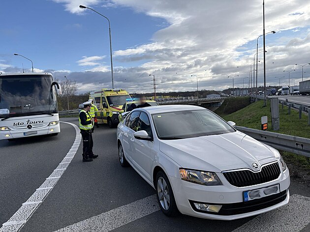 Brněnští dálniční policisté oživili měsíčního chlapečka bez dechu, se kterým u nich zastavili jeho rodiče. Na snímku příjezd přivolaných záchranářů.