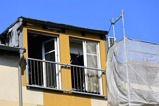 Následky požáru střechy bytového domu v brněnských Chrlicích (12. června 2025)