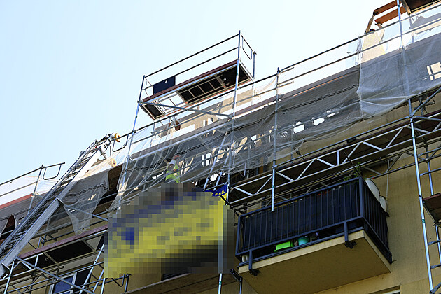 Následky požáru střechy bytového domu v brněnských Chrlicích (12. června 2025)