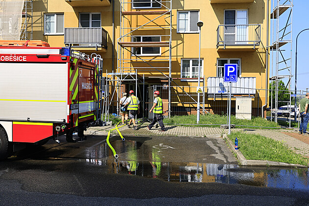 Následky požáru střechy bytového domu v brněnských Chrlicích (12. června 2025)