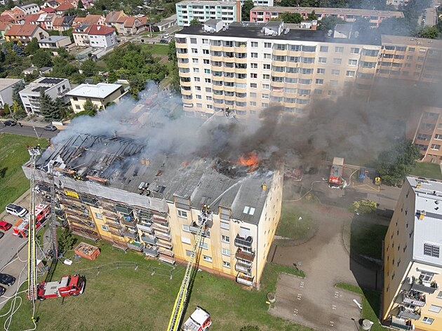 Požár střechy bytového domu v brněnských Chrlicích (11. června 2025)